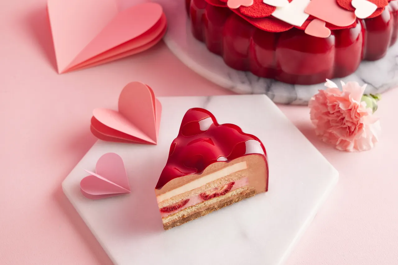 内馅特以干燥大湖草莓与新鲜草莓制成,软Q的草莓果粒犹如音符般在舌尖跃动。夹层的蛋糕体为湿润松软的杏仁海绵蛋糕,底部则铺上以榛果酱、杏仁、牛奶巧克力及奶油烤制的榛果脆饼,带来清脆爽口的惊喜口感。从外观到内馅,每一道工序都凝聚对母亲的深挚情感,细腻描绘出妈妈温柔多姿的风采。