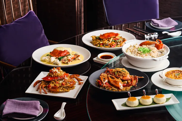 「金汤鳕场蟹肉焗白菜」以脆口的娃娃菜为主体,将煮透的汤汁加入南瓜泥熬煮至金黄色泽,另搭配蒸熟的鳕场蟹肉,充分吸收点滴精华,后覆以香浓起司焗烤赋味,是不喜沾手饕客的不二首选。而历来广受欢迎的大闸蟹今年也不缺席,推荐以清蒸方式享用饱满蟹黄和蟹膏的原味,完整体现蟹肉的细致鲜嫩。