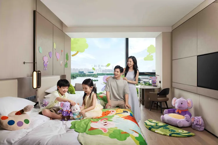 此次的「亲子豪友团」原创IP是由万豪旅享家所全新规划,为小小旅享家们呈现童趣盎然的家庭出游行程,原创IP角色一共是由三位热爱旅行的成员组成,分别为团长大象诺亚(Noah)勇敢坚韧,擅长社交与绘画,喜欢用画笔记录旅途点滴;狐狸卢卡(Luca)活力四射,性格开朗,热爱摄影,擅于捕捉旅程中的动人瞬间;绵羊米娅(Mia)聪慧好学,热衷探索新知,乐于用阅读来丰富自己的旅行体验。入住主题房之旅客,除了可于入住前三天任一选择三款主题房并获得相对应的角色后背娃包,房间内更有沉浸式的陈设、床垫、大型娃娃等周边,处处融入角色元素,带来轻松而富有童趣的亲子假期体验。