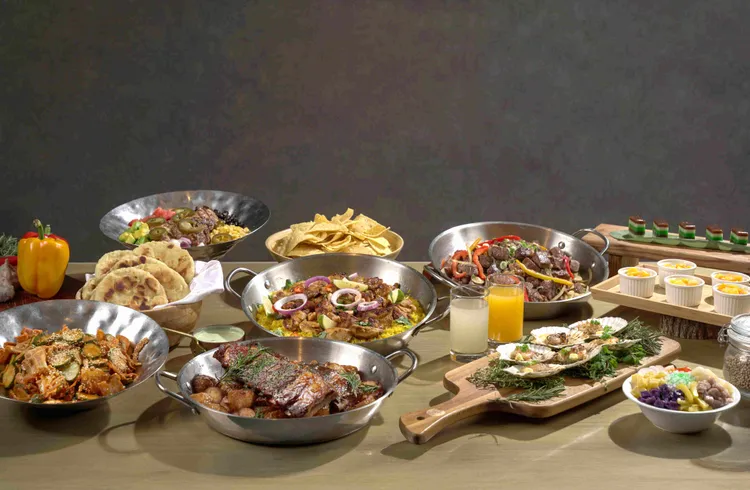 接著是「墨西哥烤鸡沙拉」,将鸡腿肉以香料腌渍后烤至金黄焦香,搭配玉米、番茄、酪梨、黑豆与墨西哥辣椒片,再佐以酸辣莎莎酱,酸甜辛辣交织出独特的美墨热情,同时保留食材最纯粹的鲜甜滋味。在享用完两道清新爽口的沙拉后,进入滋味浓厚的烧烤料理。起源于印度西北部旁遮普地区的「坦都里烤鸡」,以优格与多种香料「坦都里马萨拉」腌渍,使鸡肉呈现鲜艳红润,再以慢火细烤至外皮金黄微焦,带有淡雅焦香气息,而鸡肉依旧鲜嫩多汁,散发浓烈而迷人的异国芳香,搭配上印度香饭、烤饼及特制优格酱,完整呈现出印度烧烤的多元风貌。