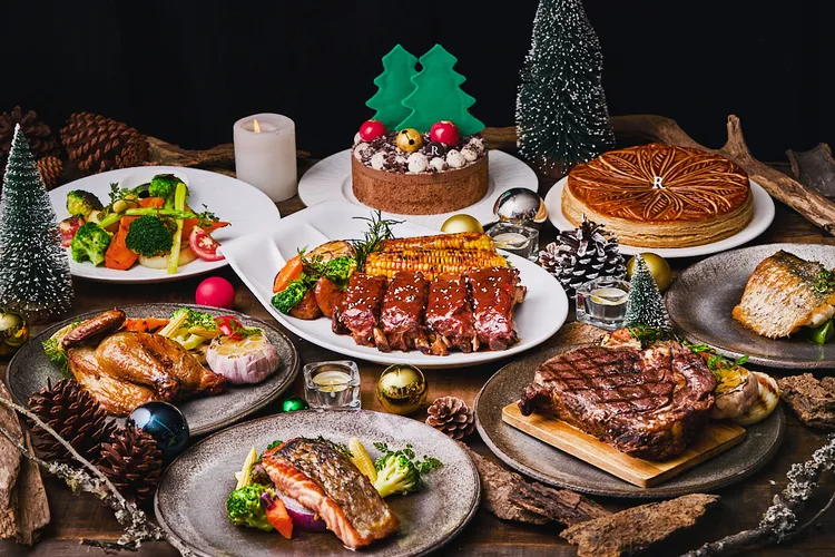 今年的台北士林万丽酒店以「炉火、香气与圣诞色彩」贯穿整个12月,从节庆餐桌到馆内布置皆呈现浓厚的节日情绪。 馆内的「节庆烤物」系列以冬季温暖为灵感,由主厨以香草、秘制酱汁与多层火烤技法堆叠冬季风味。「炉烤春鸡」以橄榄油、迷迭香与柠檬腌制后烘烤,外皮微脆、肉质多汁,每口都能尝到清爽与香草的温润;「炉烤牛肋眼」以红酒、美式香料慢炖再烤,切面粉嫩、油脂分布均衡,肉汁与酒香交织出浓郁层次;「炉烤猪肋排」入口软嫩、焦香四溢,结合蜂蜜芥末与BBQ酱汁,更添节庆欢聚的共享气味。海鲜则推出「炉烤鲑鱼/鲈鱼排」,以柠檬与香草烤出爽口细致的海洋风味;蔬食者亦可选择以南瓜、茄子、甜椒等制成的「烤时蔬拼盘」,呈现天然甘甜与亮眼色泽。