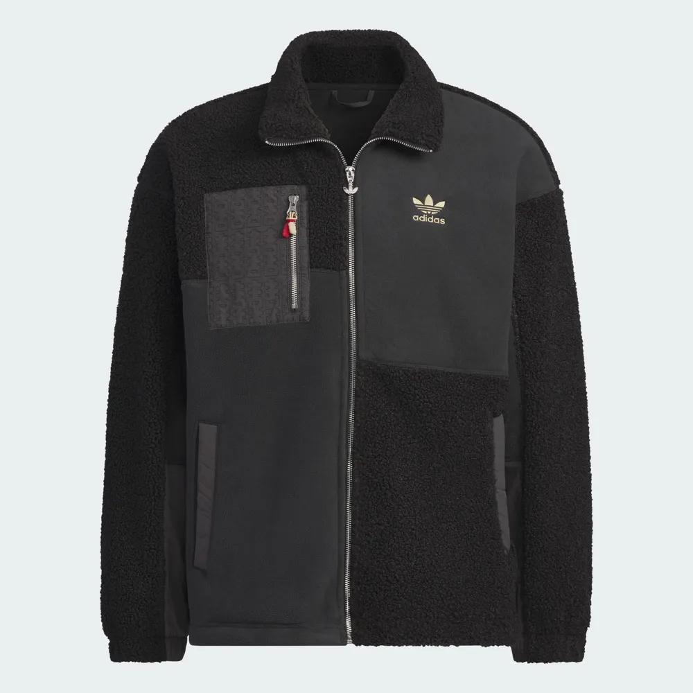 佳辰在环保皮草外套下,内搭米白色Miffy棋盘格纹针织衫,上衣胸前缀有红色三片叶标志,以清新风格呼应新春气息;祖安演绎的黑色飞行员夹克同样饰以红色三片叶图案,内里红色格纹的设计亦藏有兔形轮廓,加上可双面穿著的设计,让造型内、外有型又具节庆味。焕钧搭配的拼接外套运用红与金色中国结缀饰胸前口袋拉练,同样巧藏招好运巧思。