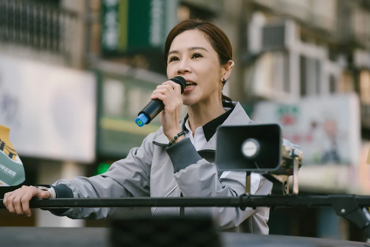 而赖佩霞拍摄时站在选举车上,近距离和支持者握手互动,她说车上除了防弹玻璃,还有维安人员帮忙撑伞,阵仗超级真实。围绕车边的支持者临演气氛热烈,喊卡后还持续为她欢呼应援,浑身散发领袖气场的赖佩霞也热情回应,让她仿佛身置真实造势活动现场。