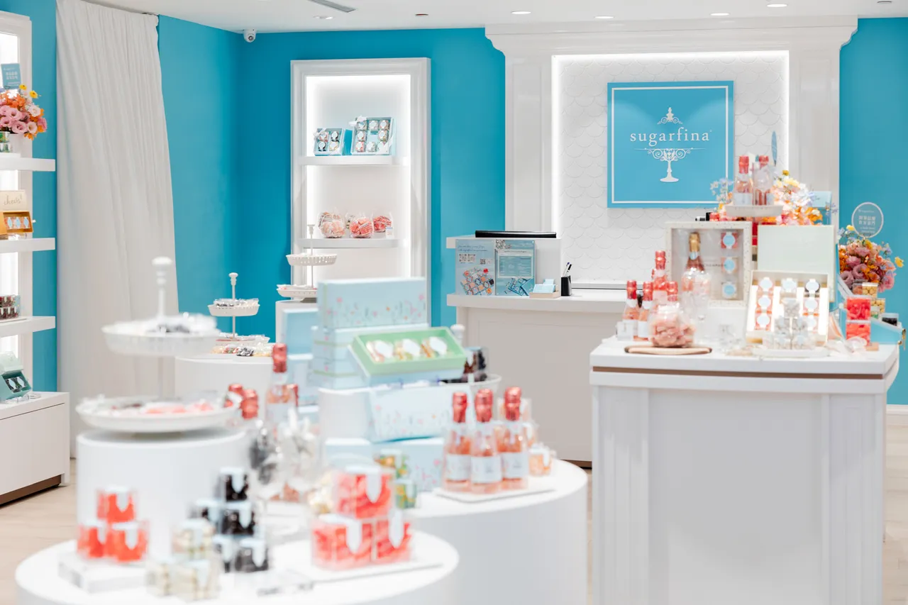 sugarfina 2012年诞生,创作灵感是要帮大人重拾童趣冒险,打造属于大人的精品糖果店,2013年其于洛杉矶开设首间实体店面、2018年进军亚洲,店内常年提供60至70种糖果选择,尤以香槟小熊软糖最受欢迎,曾创下开卖2小时销售一空、排队名单多达1.8万人的纪录,除香槟小熊软糖外,还有来自世界各地的软糖,坚持以传统职人工艺少量制作,并拥有素食者糖果、酒类糖果、可可球等选择,当然也有适合小朋友的糖果。