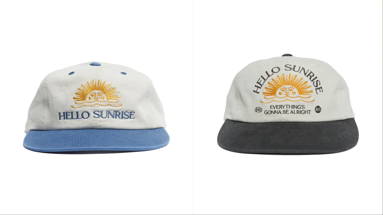 Hello Sunrise的帽款设计将美式刺绣搭配上复古配色,并以不同材质呈现独特质感,而采用的平帽簷版型,则让帽款可以随心所欲依据各种穿搭灵活变化,除了拼色款式之外,单色设计的帽身、帽簷同样独具匠心,搭配浅色刺绣图样呈现撞色效果,展现简约风格之余也不失细腻设计。