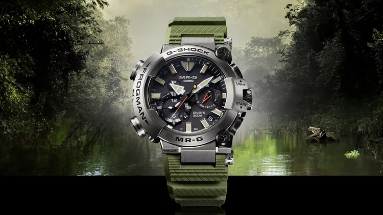 MR-G全系列皆由G-SHOCK日本山形厂的「Premium Production Line」顶级生产线打造,全新登场的MRG-BF1000RG,整体金属表壳由超过70多个零件组成,包含表壳、表圈、背盖、表冠等,皆采用轻盈防锈的钛金属制成,并经深层硬化处理与Tic碳化钛处理,提升耐磨、抗刮性能,同时保持钛金属的低调优雅光泽。且为符合ISO标准的200米防水性能,除了表壳采用防水密封O型环外,表冠亦采用气密旋入式构造,再加入高防水氟橡胶材质的缓冲零件,以达到优异防水性能。