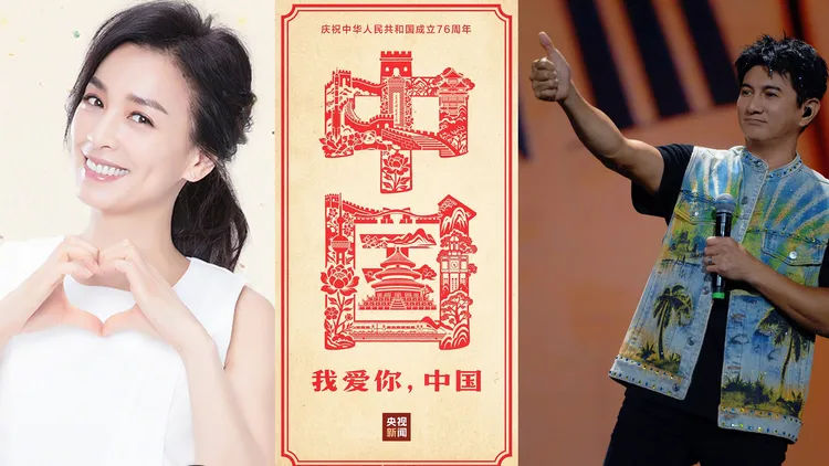 吴奇隆、林瑞阳、刘畊宏皆PO「祝福伟大祖国繁荣昌盛,国富民强」,张庭说:「如果信仰有颜色,那一定是中国红。祝福祖国,明天更美好!」杨宗纬写道:「繁荣昌盛!国泰民安!」以往常抢头香的欧阳娜娜人在巴黎时装周看LV秀,目前尚未有所表示,妹妹欧阳娣娣抢先一步:「愿江山如画,万里皆安!」父亲是山东人、母亲是台湾邹族原住民的田丽表示:「祝福祖国繁荣昌盛,国泰民安!76周岁生日快乐!」