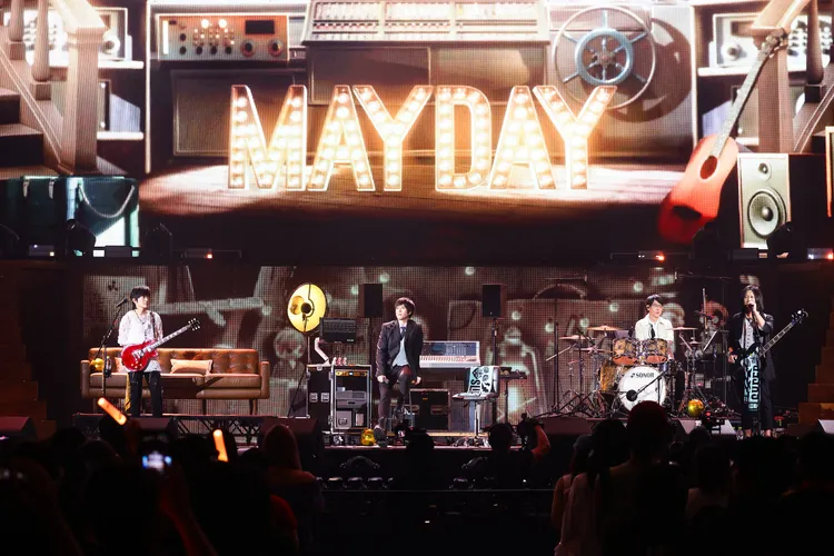 玛莎今晚站在石头专属的位置向大家打招呼,怪兽打趣地说:「现在如果想要听吉他手,只有一个嘛,另一个可能要『观落阴』,是连线啦,我讲错」,玛莎随后分享,石头近来因身体不舒服,「请大家见谅,『四月天』在现场,还是会依然的用尽全力,希望大家还是可以听得很开心。」