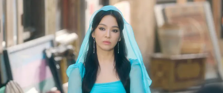 不过戏外惺惺相惜的2人,戏里其实是情敌。宋慧乔客串精灵金宇彬的前女友「金妮雅」,第8集顶著超浓的烟熏妆登场,一现身就飘出阵阵仙气,冻龄美貌令人赞叹,看不出已经43岁。秀智摸了摸罐子召唤出金妮雅现身,忍不住喊出「宋慧乔」,金妮雅自豪回「看妳一直搓罐子,我就到Netflix选了你们那里最满意的长相来用」,台词令人会心一笑。双美更以「那个女的」称呼彼此互不相让,第10集正面交锋,激荡出不同的火花。