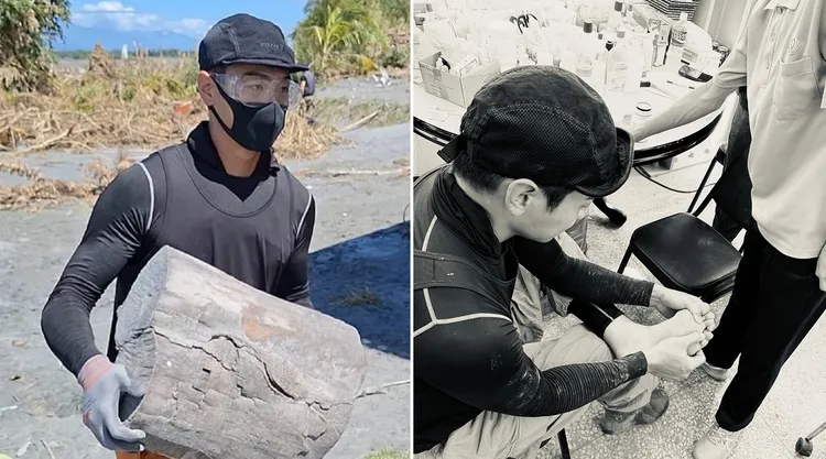 亮哲本身也有到花莲帮忙,他分享之前受伤经验,表示以前出外景很爱赤脚到处走,感受人亲土亲的感觉,但有一次突然脚下一阵刺痛,只看到泥土混著一点血,他不担误大家继续工作,但后来脚底发红越来越痛,医生告诉他脚底那个2公分左右的洞里,满满的都是泥巴,完全没有清出来,已经感染发炎,都快烂掉了。