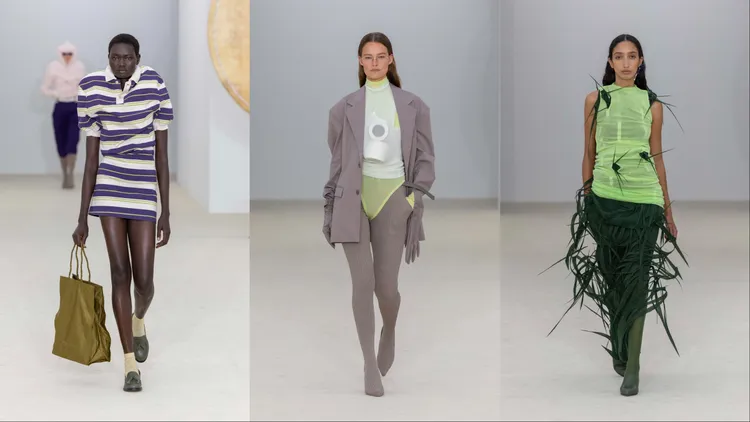 此外,延续品牌对自然与生命力的探索,本季将「生长」转化为服装的版型,城市中坚韧生长的棕榈植株被捕捉进布面,标志性皱褶呼应叶片柔软却有骨架的结构。色调上采用亮眼萤光绿和黄色,与内敛的黑、白、灰色调形成鲜明对比。