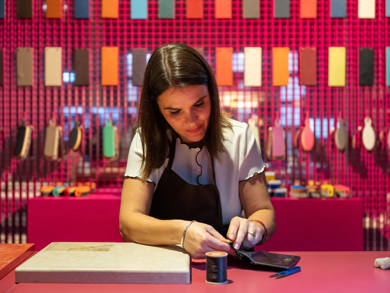 本次展览空间被设计为一座开放的「工匠工作台」,观众可随著色彩引导自由探索,现场邀请来自世界各地的爱马仕工匠亲临演示,从经典Kelly手袋的缝制、丝巾雕版与印染、皮革手套的制作、Hermès H08腕表的装配,到在白瓷上描绘「夜行兽」(Fauves de Nuit)的笔触,每个细节都展现时间的耐性与手艺的诗意。