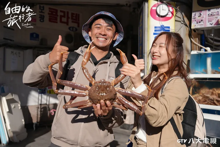 两人也前往热闹的机张市场,看到熟悉的柿子水果摊,融融好奇询问大家喜好「软」柿还是「硬」柿?没想到包括融融和工作人员一面倒选硬的脆口,身为在地人的咪蕾和水果摊老板则爱软Q口感,意外发现同样水果,台韩的偏好也大不同。此外,市场中绝不能错过的松叶蟹,由于价格随季节浮动,外景拍摄时刚好遇上高价期间,一只重约1公斤的松叶蟹,台币近2千元,融融当下自掏腰包大方请客;料理后的蟹肉肥美鲜甜,融融、咪蕾大啖美食,直呼太幸福!