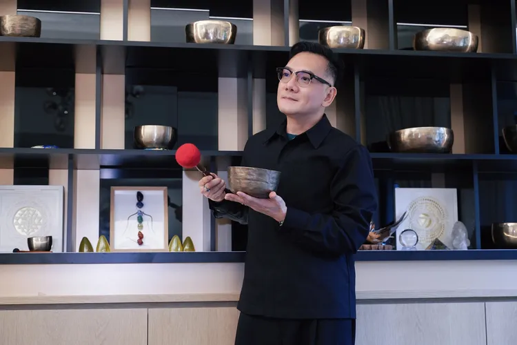 田定丰主张无需仪式一颗铜钵即可,敲一声钵作为「身心吸尘器」,将颂钵带入日常清空情绪的垃圾。彭欣伟摄