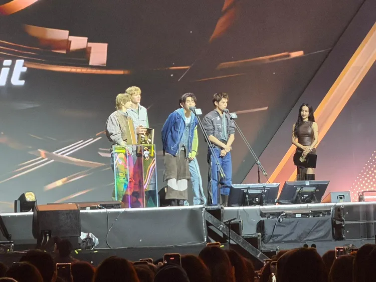 CORTS被唱名第一时间愣住,接著兴奋走上台,赵雨凡用中文打招呼「大家好」,继续用超台的中文奖感言「这是2026年第一次收到的这个奖,非常感谢大家的支持」,接著换成英文「我们2026会很努力工作,谢谢COER(粉丝名称)的支持,让我再听一次你们的声音」,全场3.3万人尖叫声不绝于耳。