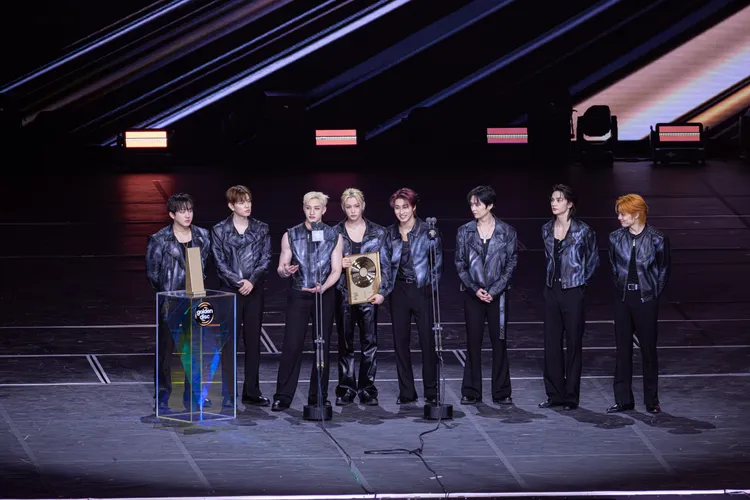 Stray Kids年度专辑奖,队长方灿感性说:「说实话这并不容易,我们尝试创作自己的音乐,一开始很多人对我们的音乐提出意见,觉得『太吵了』,但我们坚持自己的想法。音乐没有答案,所以我们想那就做我们喜欢的事,继续创作音乐,带给世界各地的人力量,而你就是其中之一,再次非常感谢你们。」