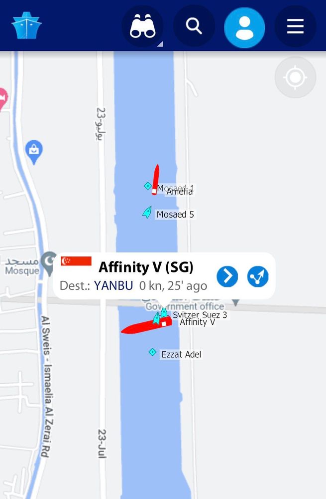 这艘货轮从葡萄牙出发,从苏伊士运河向南航行,目的地是沙乌地阿拉伯的延布港(Yanbu)。运河管理局在「亲和号」搁浅后,立即派出多艘拖船救援,5小时后终于让油轮浮起,继续行驶。运河交通已恢复正常。