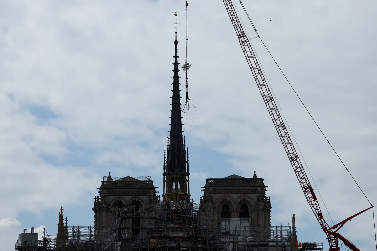 巴黎圣母院在2019年4月15日发生火灾,导致教堂的尖塔和部分屋顶倒塌。5年后,修复工作取得了重大进展,包括重新安装了「尖顶中被铅包覆的针」(the spire’s lead-covered needle)。