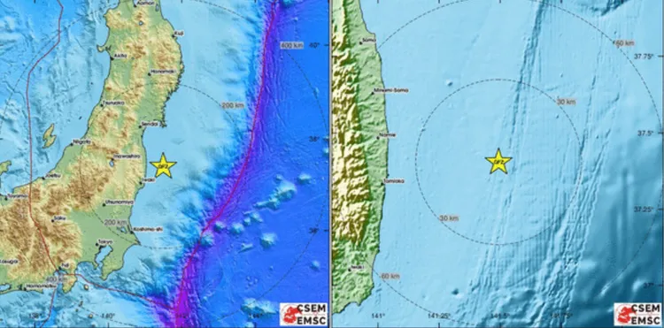 日本本州东海岸附近今天发生规模6地震。翻摄EMSC