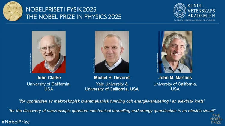 委员会赞扬三位得主的贡献,指出他们证明了「量子世界那种奇异的性质,可以在一个足以握在手中的系统中具体展现出来」。