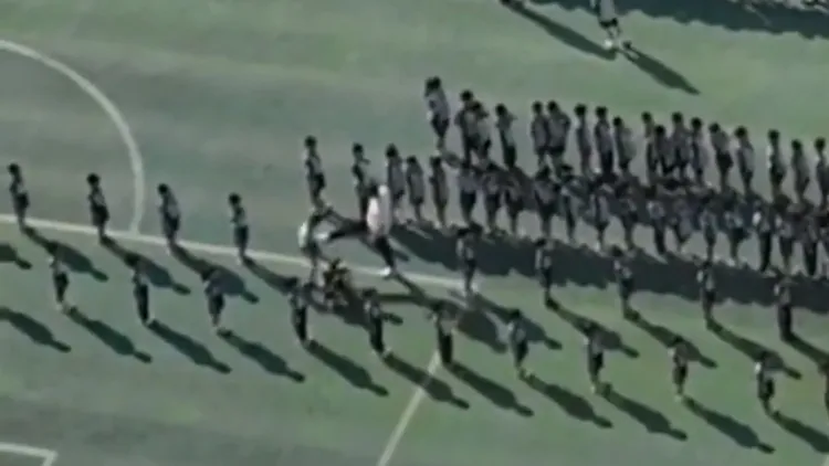 据中国《三湘都市报》报导,这段影片今天在社群上引起关注,影片中,一名穿著白色上衣的教师,在学生队伍中巡查,不知何故突然出脚连续踹倒2名学生,然后走向他们身后的学生疑似言语辱骂,被踹倒的学生则赶紧起身又回到队伍里。