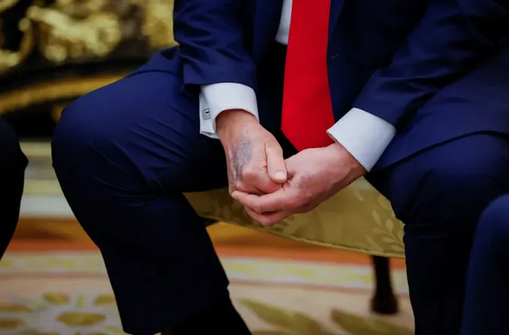 白宫表示,川普手上的瘀青是因为他跟许多人握手所致。