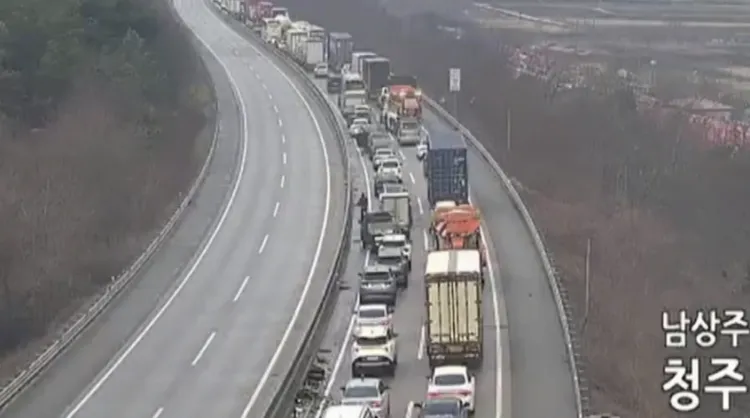 综合韩媒报导,忠清南道瑞山盈德高速公路,上午6时10分左右有辆大货车打滑失控,冲出护栏坠桥,驾驶不幸身亡。同时附近对向车道也发生2起追撞事故,共波及30多辆车,许多车被挤成废铁,事故共造成至少4人死亡。