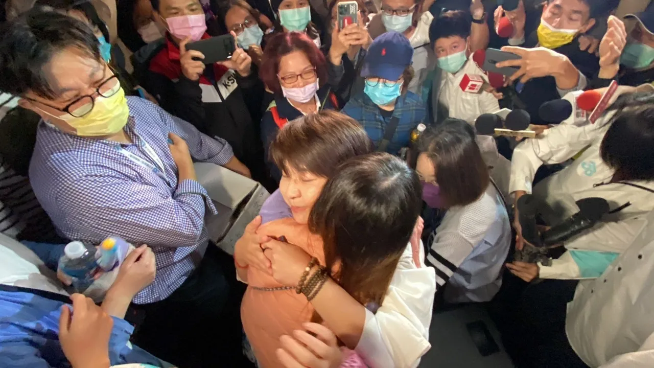 黄珊珊表示,「谢谢市长,谢谢你相信我,谢谢你把最重要的任务交给我,但我没有完成。」柯文哲则继续鼓励说道,「回去继续努力就好,这样就好。」市长我可以抱你一下吗?接者直接抱上去,柯文哲则多次说道「继续努力」。黄珊珊也承诺,「我会继续守护台北」,并与台上人员感谢支持者。