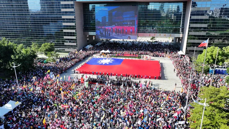 台中市民政局长吴世玮表示,今年国庆升旗典礼以「富市台中、国庆岁丰」为主题,主视觉以「丰收」象征人民耕耘成果与未来祝福,色彩取自台湾办桌常见红、蓝、绿三色帐篷,融合节庆热闹氛围与地方特色,并以简约重复图样编织而成,展现全民同庆的荣耀时刻。