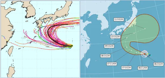 此外,最新欧洲系集模式模拟图与最新气象署路径潜势预测图均显示,「哈隆」已调整将在日本南方海面向东北东大回转,即便强度会逐渐增强、直逼强台,但其距离台湾很远、无直接威胁。