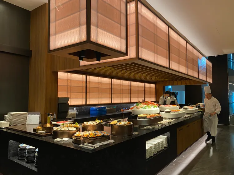 全餐台共提供超过50款餐点,规模成长达67%,其中「海鲜台」有市场少见的虾蛄、松叶蟹脚及鲍鱼,「铁板台」有现煎盐昆布烧鲍鱼及假日限定的现煎泰国虾;「炉烤台」则以巴西烧烤为灵感,首推和牛臀上盖、马沙拉烤羊腿等。
