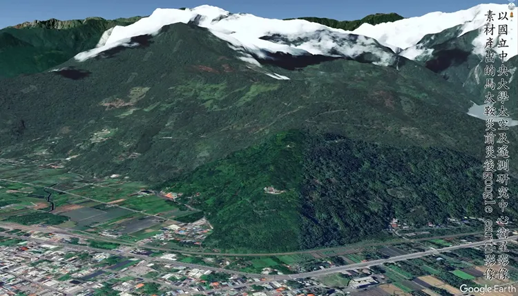 洪春景16日将花莲马太鞍溪堰塞湖洪灾卫星画面实况影片PO在脸书上,他写道:「这次马太鞍溪堰塞湖灾害使用中央大学所拍摄的卫星素材时,操作时竟然出现灾前灾后的连续影像,山区被强雨冲刷得只剩下黄土山壁,影片完整呈现出光复及凤林所有灾害流域的细节。」