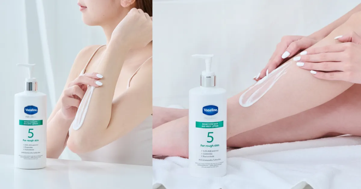 你的身体有哪些令人困扰的部位呢?例如手臂上如鸡皮般密集的毛囊颗粒、手肘脚踝粗如砂纸的暗沈老皮、或天知地知别人不知但只有自己知的恼人背痘,这款结合高浓度医美精华的「凡士林5.5%果酸精华 焕肤调理精华身体乳」,经消费者实证能让肤况全面升级!其中奢侈注入5.5%果酸精华#,能温和*代谢老废角质,净化痘痘粉刺与粗糙颗粒,改善肌肤暗沈;并含有高纯度烟碱醯胺、维他命原B5及神经醯胺,有效细致毛孔、舒缓干燥,修护并强化肌肤屏障,一步步实现平滑水润的抛光肌!