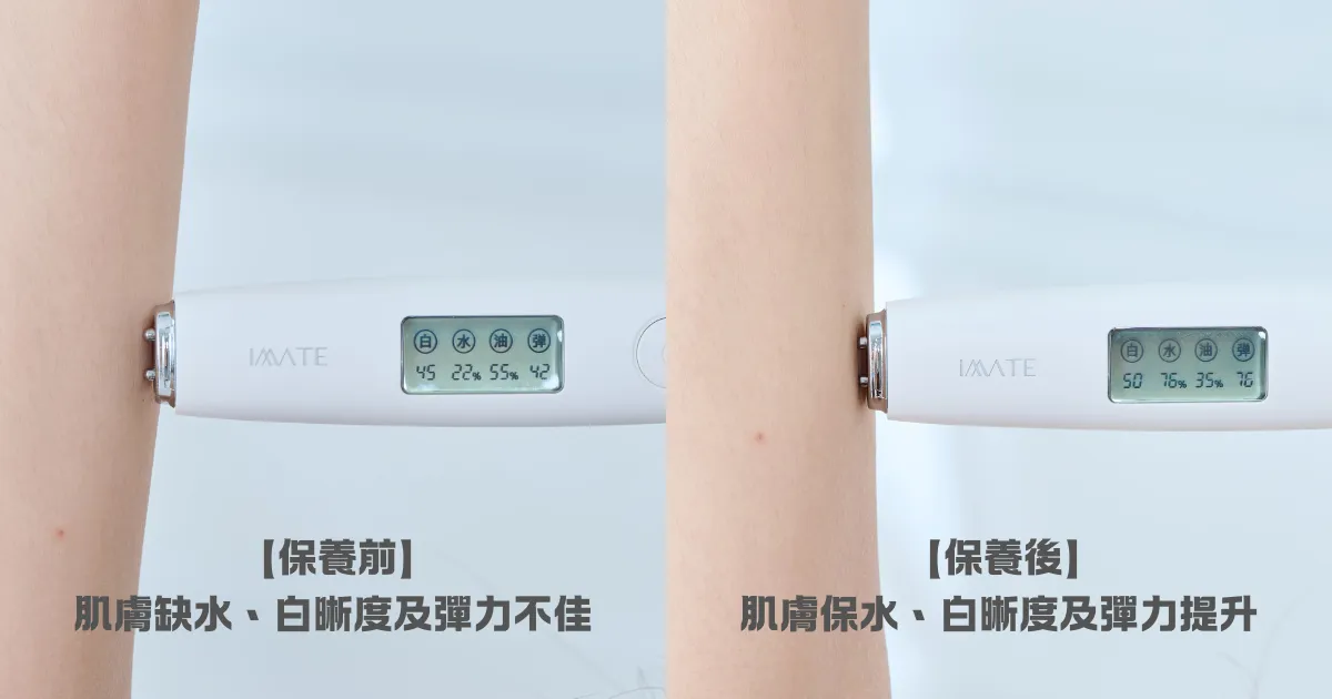 同时,小编利用肤质检测笔进行保养前后的数值比较,可明显看出保养前肌肤缺水严重,在白晰度及弹力上表现平平;但经过7天密集保养后,仿佛真的焕肤般让肤况全面升级!水份从22%→76%,弹力42→76,白晰度45→50,另外很惊喜的发现油份下降!可见这款身体乳并不会过于油腻对肌肤造成负担,真的是一年四季都需要常备的身体乳,能在需要时立刻神救援,帮助稳定肤况,让肌肤水嫩Q弹,轻松成为零死角质感美女!