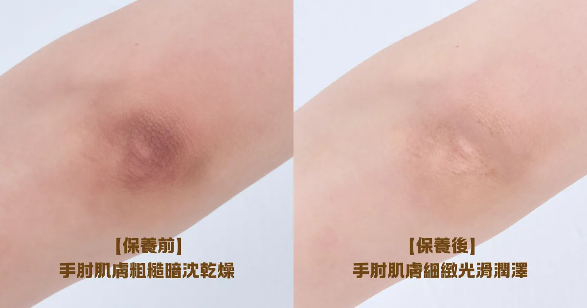 手肘膝盖易有老废角质堆积,形成丑丑的暗沈老皮;肩膀手臂肌肤也容易干糙缺水,摸起来有颗粒感甚至脱屑。