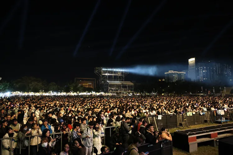 紧接在「麋先生」的表验后,由号称「风雨男团」的FEniX带来精湛唱跳演出,点燃现场热力,台下粉丝热情欢呼。截至晚间八点为止,美食区已经全满,舞台前草地区则已接近九分满,主办单位统计现场约已聚集15万人次观众。