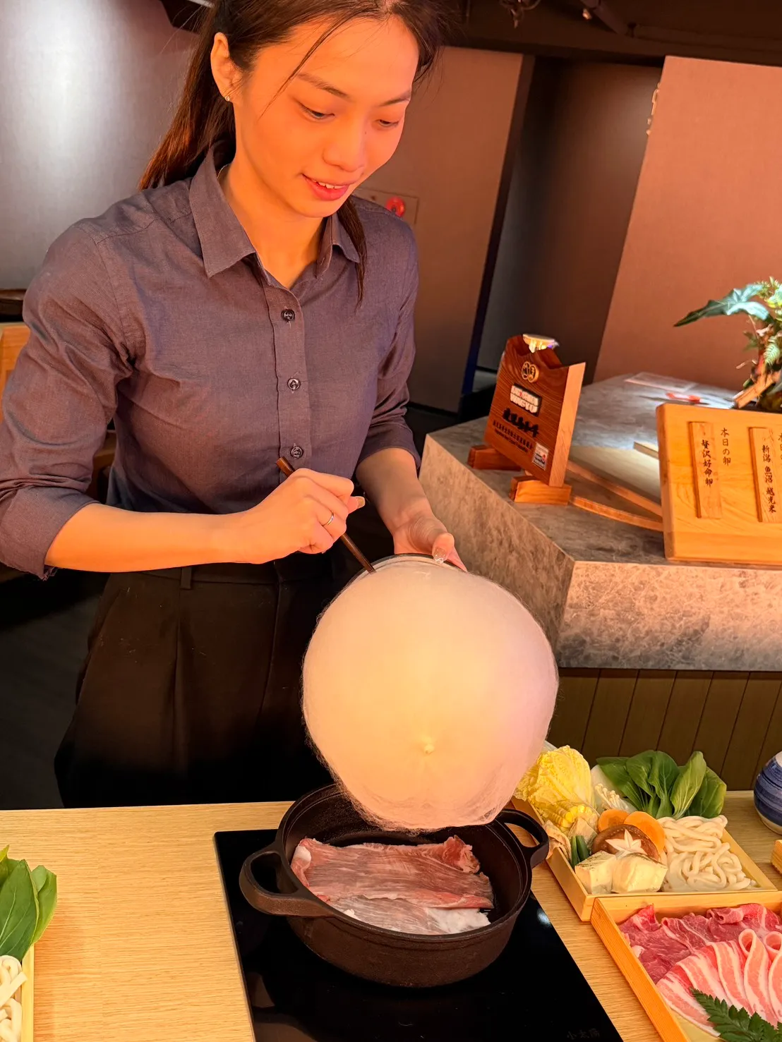 关西风的餐点,必须配上一碗晶莹透亮的白米饭。蜜柑特选新潟鱼沼越光米,米粒饱满口感Q弹,细嚼之后散发的淡雅米香,再配一口寿喜烧肉片,幸福竟然如此简单。除了甘甜滋味的关西风寿喜烧,另有「关东风棉花糖寿喜烧」以及清爽的昆布汤锅,让消费者有三种锅底可选择。关东风同样采用来自日本的调料,再加上一朵大大的棉花糖,吃进嘴里又是香甜,看在眼里又可爱,让人忍不住先多拍几则限动再开动。
