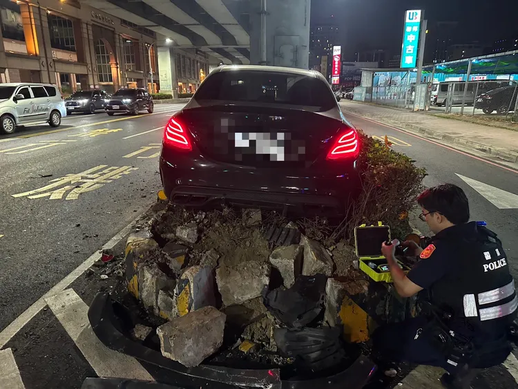 但疑似许男疲劳驾驶,自撞新北大道快慢车道分隔岛,整辆车直接「骑上」,所幸并未波及其他用路人,驾驶也仅受轻伤未送医。