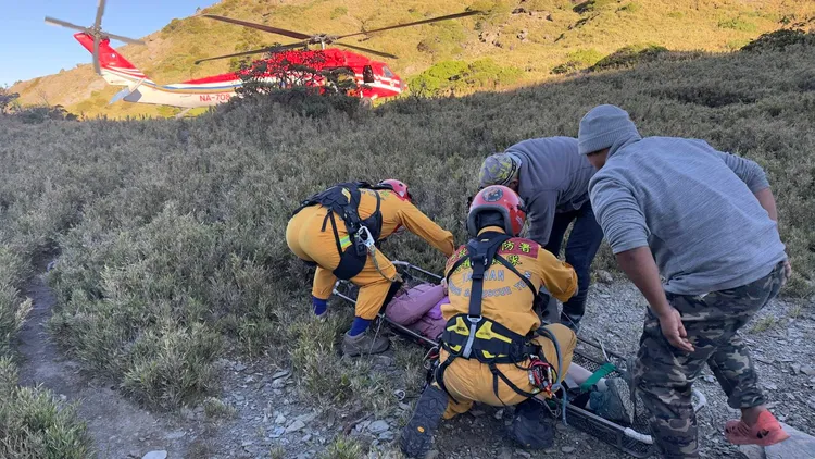 空中勤务总队台中清泉岗驻地勤务第二大队第三队,今天(5日)上午接获总队勤务指挥中心电话通知,执行台中市和平区南湖山屋华姓女登山客(48岁)登山途中不慎跌倒,造成膝盖开放性骨折无法行走,申请空中救援。