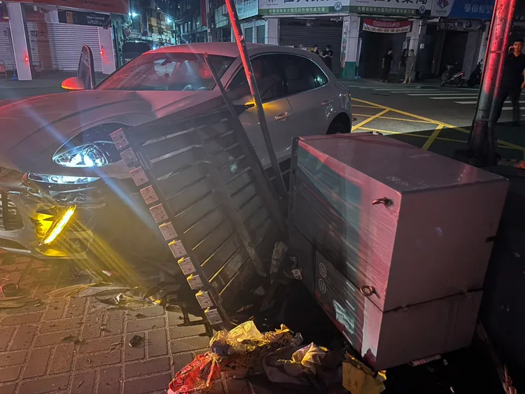 台中市警四分局今天凌晨1时50分接获报案,南屯区黎明路一段1040号前发生自撞车祸事故,到场后发现是36岁的苏姓男子驾驶保时捷休旅车,搭载40岁的赖姓男子沿黎明路北往南往文昌街方向行驶,行经事故地点时车辆失控碰撞路边停放的自小客车,再碰撞台电变电箱,还一度造成附近住户停电。苏男脚部擦挫伤,赖男未受伤,均未送医。