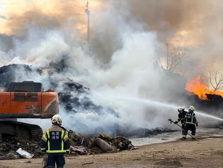 桃园市消防局表示,今天中午11时41分据报八德区兴丰路一处掩埋场发生火警,出动消防人员34名、消防车12辆、救护车1辆到场,现场为燃烧掩埋场内堆放废弃物,初估燃烧面积约50平方公尺,经出水灌救后,火势在12时18分控制,目前仍由消防人员持续灭火中,所幸现场无人员受伤受困。