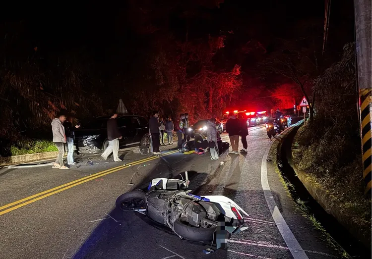 竹崎警分局阿里山十字所员警到场处理,初步调查,机车骑士林男骑车载著女性友人,与其他同行友人要上阿里山看日出,行经事故路段,疑似因为连续弯路,林男转弯时不慎滑倒自摔,连人带车「喷」到对向车道,与正要下山的张男驾驶的自小客车发生碰撞。