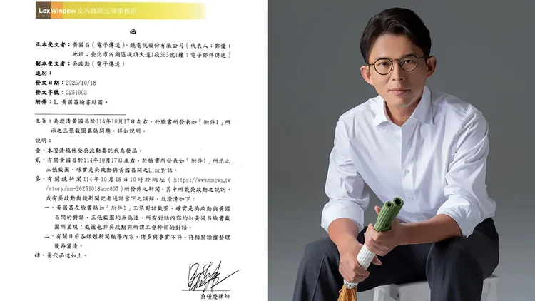 安和法律事务所今天下午代吴姓工程师发出律师函,指出黄国昌昨天在脸书po出的3张对话截图「确实是吴政勋与黄国昌间之LINE对话」,黄并没有伪造。对于《镜周刊》的报导内容,律师函指出「诸多与事实不符」。