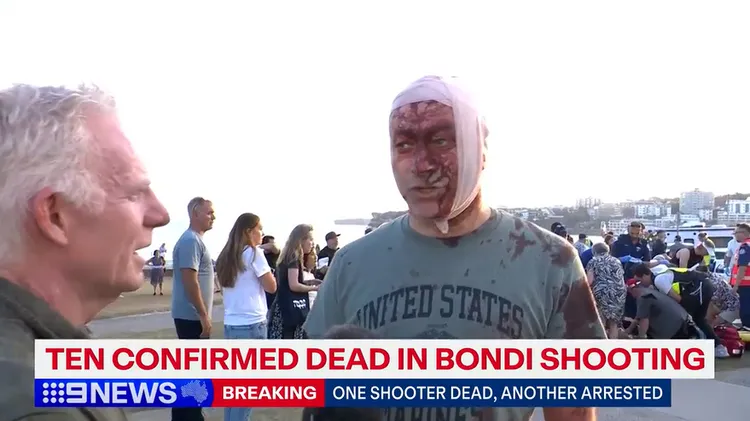 【余平/综合外电】澳洲雪梨邦代海滩(Bondi Beach)发生骇人枪击事件,至少29人中弹,12人死亡。有现场目击者拍下一名勇敢白衣男子冲上前夺枪画面。男子身受枪伤,其家属在医院外受访。