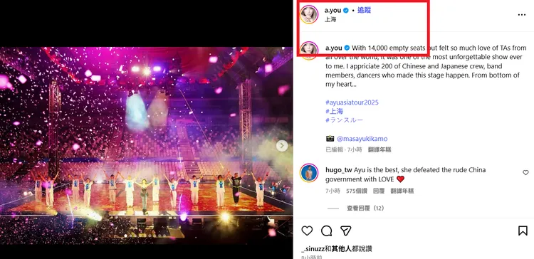 滨崎步上海无观众开唱 中国粉丝留言批评政治干扰