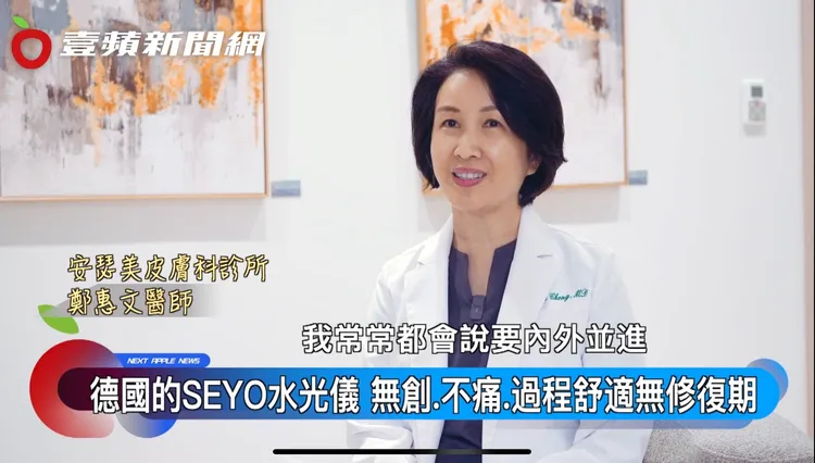 安瑟美皮肤科诊所郑惠文医师指出,维持皮肤稳定、气色好,除了规律作息、避免过度刺激的饮食与加强防晒外,想让保养品更有效吸收,可以透过像SEYO水光仪这类的无创导入来辅助。近年来,「无针式保养」成为许多追求自然亮肤族群的新趋势,而来自德国的 SEYO水光仪,主打非侵入性导入技术,过程无针、无痛、无修复期,适合希望在日常中维持稳定肤况的消费者。郑惠文医师分享:「我们常常形容做完一次SEYO的效果,就像敷了100片面膜肌肤水光透亮,是追求韩系水光肌的好选择。」