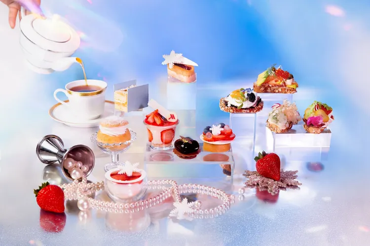 每年在《世界幸福报告》名列前茅的北欧国度,独特慢活步调与对生活仪式感的细腻追求,令人心生向往。本季「极光梦游下午茶」点心坊主厨曾士斌以象征冬季的柔白色系为主轴,及雪花巧克力和白色糖粉妆点,将北欧特有柔和温暖印象注入甜点中。使用当令大湖草莓「酸甜草莓塔」香甜湿润的台湾小农蜂蜜蛋糕搭配姜味凤梨果泥与覆盆莓酱,挤上法芙娜覆盆子巧克力香缇,点缀新鲜草莓与莓果。