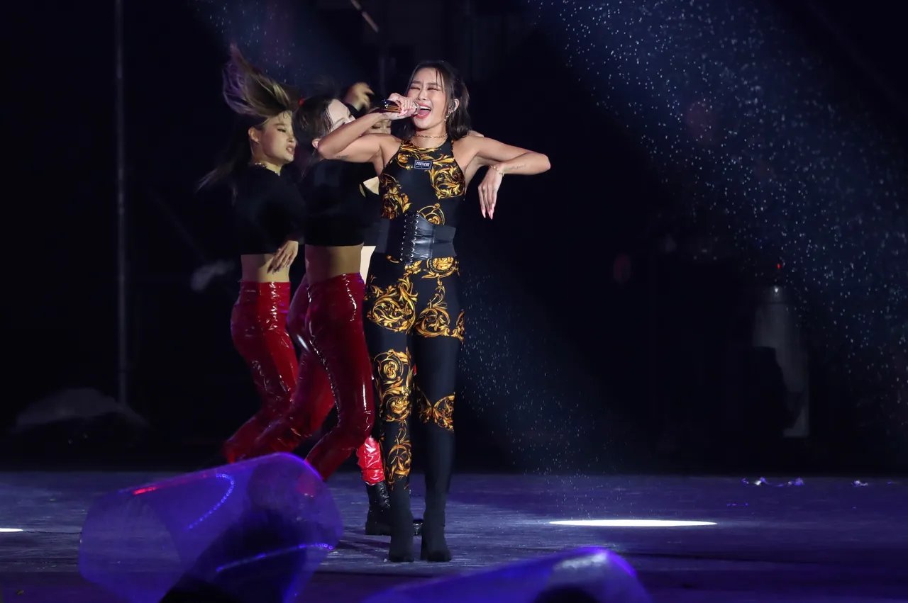 孝琳用中文向大家打招呼,「大家好我是孝琳」、「新年快乐」。接著感谢大家,现场冒雨,大家辛苦了。孝琳之前向台湾粉丝承诺会再来台,果真遵守约定,她表示「很开心2023年最后一天能和大家一起过」。