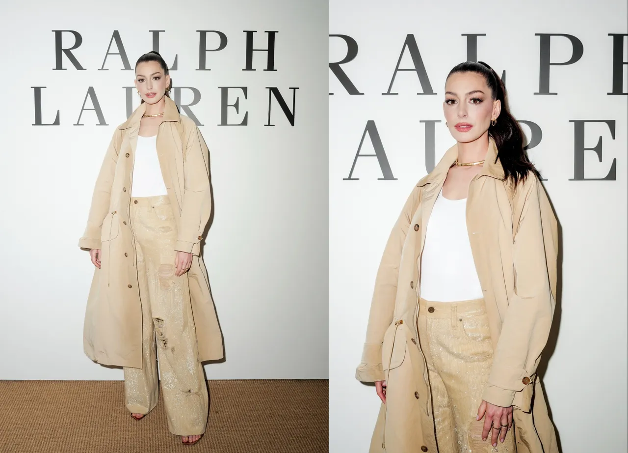 RALPH LAUREN 2025秋冬时装大秀在纽约时间4月17日登场,场边也度邀请一众星光到场力挺,其中,林志玲再度顶著一张冻龄神颜亮相,身穿品牌2025早春系列的串珠流苏背心若隐若现的剪裁相当优雅性感,而下半身的白色宽裤则又突显出志玲姐姐的修长比例;至于同为女神的安海瑟薇,则以长版抽绳外套配上同色系亮片破裤,她还绑起来了俐落高马尾,整个人完全就是超有个性的真人版芭比。