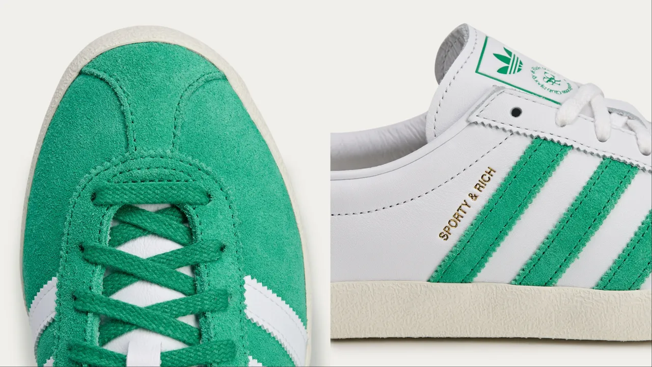 此次adidas Originals x Sporty & Rich联名系列,将经典复古网球元素玩出新意,焦点锁定在2款联名鞋款,双方重新演绎1970年代的经典鞋型adidas Originals Blanc,设计上运用绿、白反转配色营造复古韵味,一款以简约白色皮革鞋身搭配抢眼绿色麂皮三条线标志,另款则大胆采用绿色麂皮鞋身衬托出白色皮革三条线,且鞋款皆配有网球拍造型鞋带挂饰与联名标志,细腻呼应此次的联名主题。